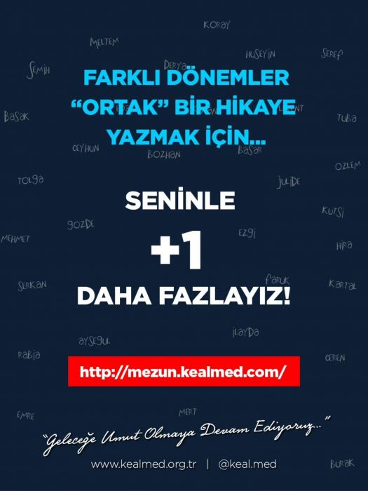 Bugün, Türkiye ve dünyanın farklı noktalarında 8000'den fazla KEAL Mezunu bulunuyor. KEAL Mezunlar Derneği olarak bizler gönüllü olarak, okulumuza sahip çıkmaya, lise ve üniversitede eğitim gören ihtiyaç sahibi KEAL'li öğrenci kardeşlerimize destek olmak için çalışıyoruz.